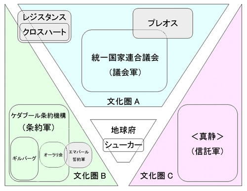 三つの文化圏はかつてワームホールを抜けた先でそれぞれ独自の文化を育み、