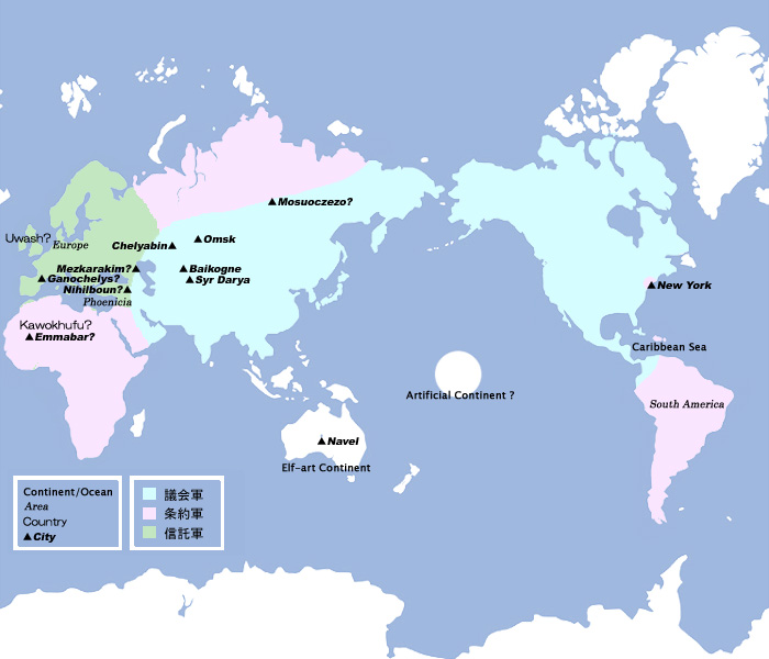 人類は地球と月に定住するほか、 要塞衛星や工場衛星などの人工天体を作り上げている。 また、火星も開発中であるらしい。
